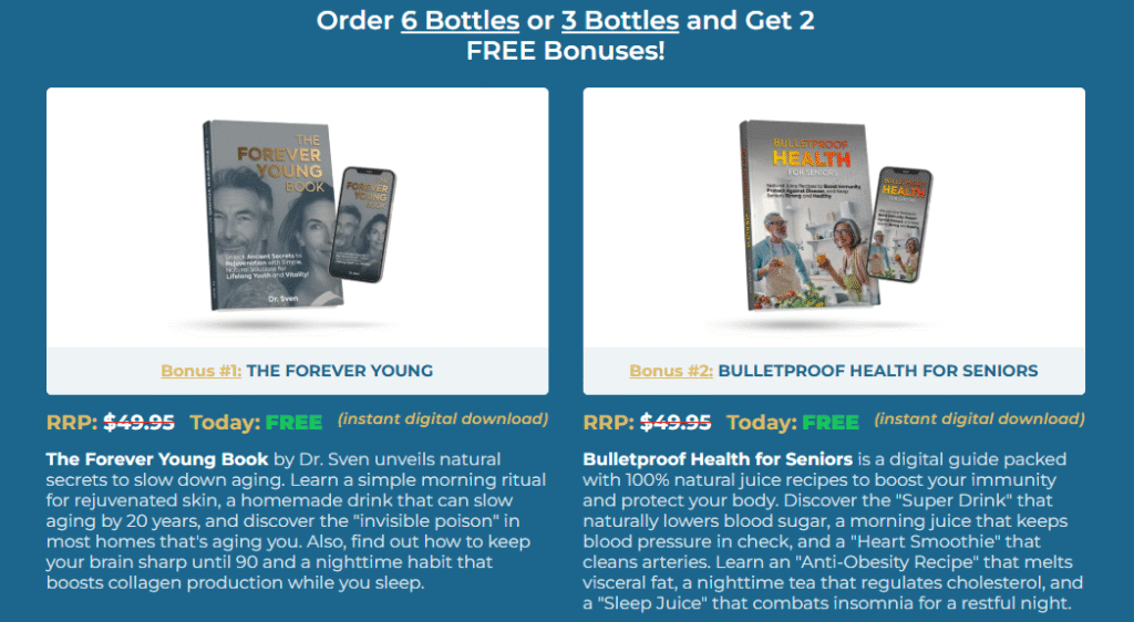 6 Bottles – $49/Bottle: Total $294 – Free shipping & handling + 2 bonus eBooks